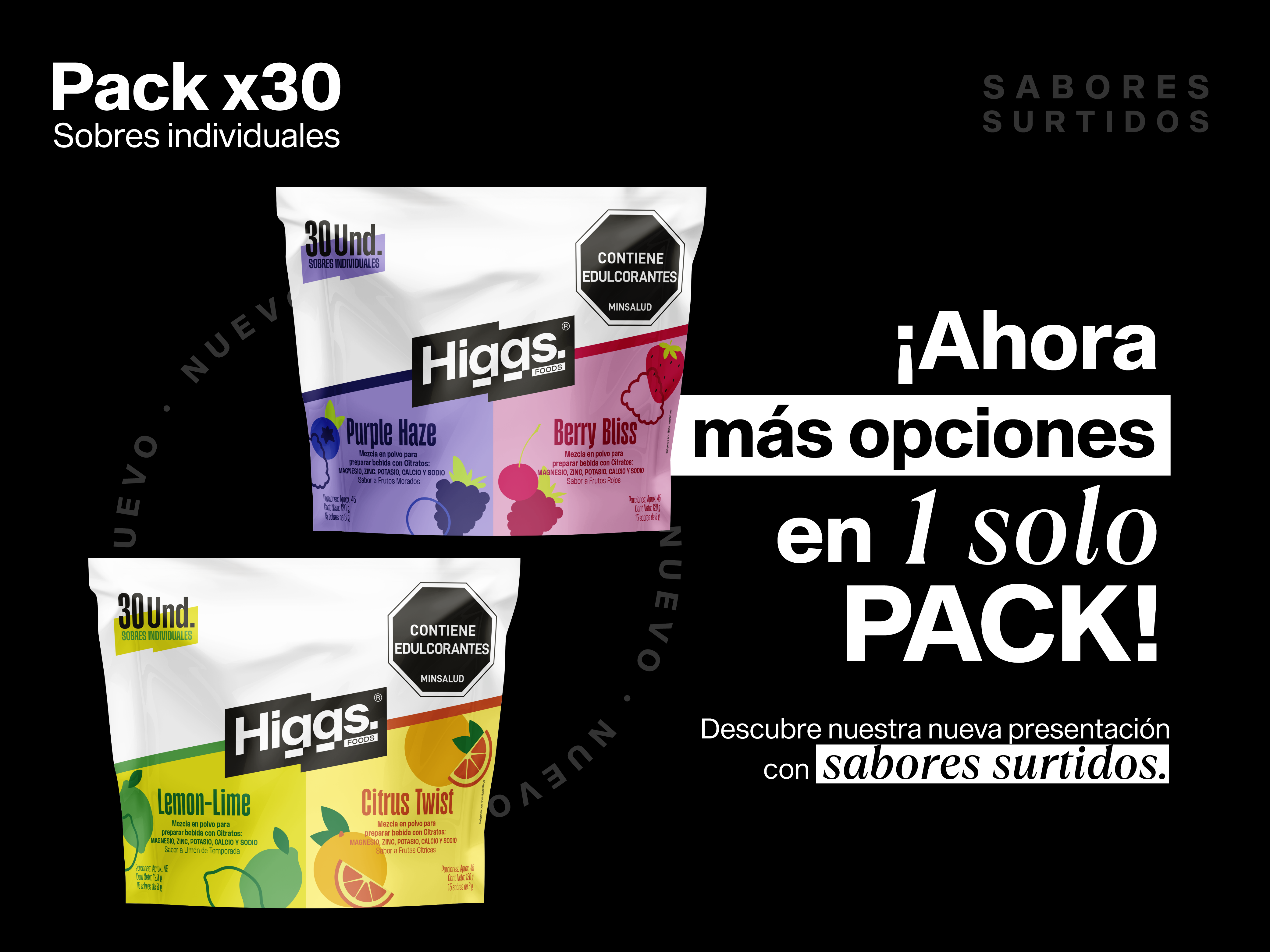 Descubre Higgs y complementa tu hidratación. Nuestras bebidas instantáneas contienen 5 minerales esenciales y vitamina C, ofreciendo una reposición más completa que el agua no puede igualar. Sin azúcar y con un sabor único que refresca y revitaliza, Higgs transforma tu hidratación diaria en un impulso para tu cuerpo y mente.